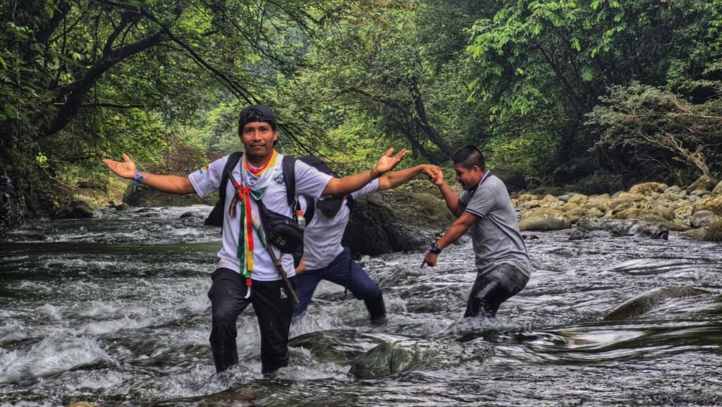 Por su parte, otras delegaciones partimos directamente desde El Sábalo rumbo a Imbapi, pasando también por las comunidades de Trinchera y Pialquer, donde finalmente nos reunimos para continuar juntos el trayecto. Tras el caminar compartido, nuestra delegación llegó ayer 29 de agosto hacia las 4:40 p.m. a la comunidad de Imbapi, lugar donde se desarrolla el V Encuentro Cultural y Gastronómico de Vida Attɨm Awá.
